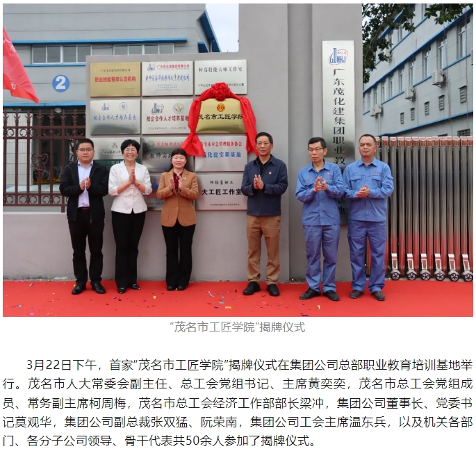 首(shou)家“茂名市(shi)工匠學院(yuan)”在茂化建(jian)正式揭牌(pai)成立!