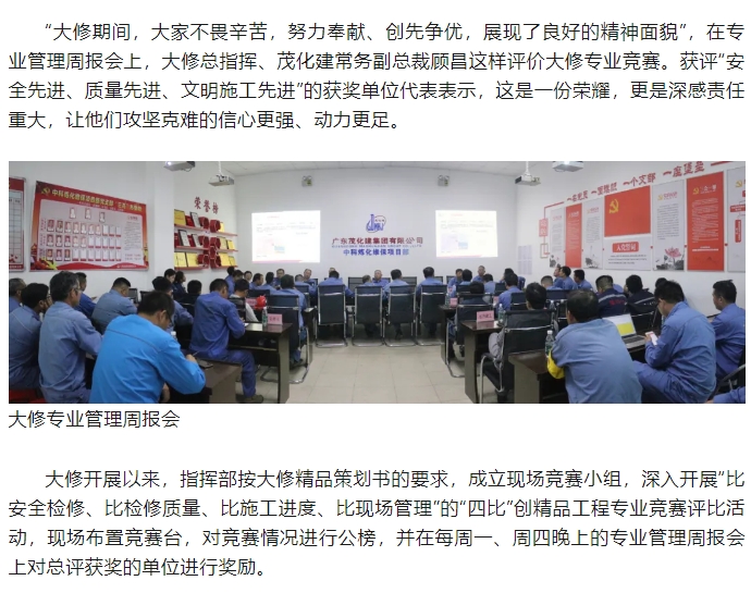 緊(jin)盯目(mu)标決(jue)戰 奮(fen)力沖(chong)刺掃(sao)尾——走(zou)馬2024年(nian)中科(ke)煉化(hua)裝置(zhi)大修(xiu)改造(zao)大會(hui)戰現(xian)場