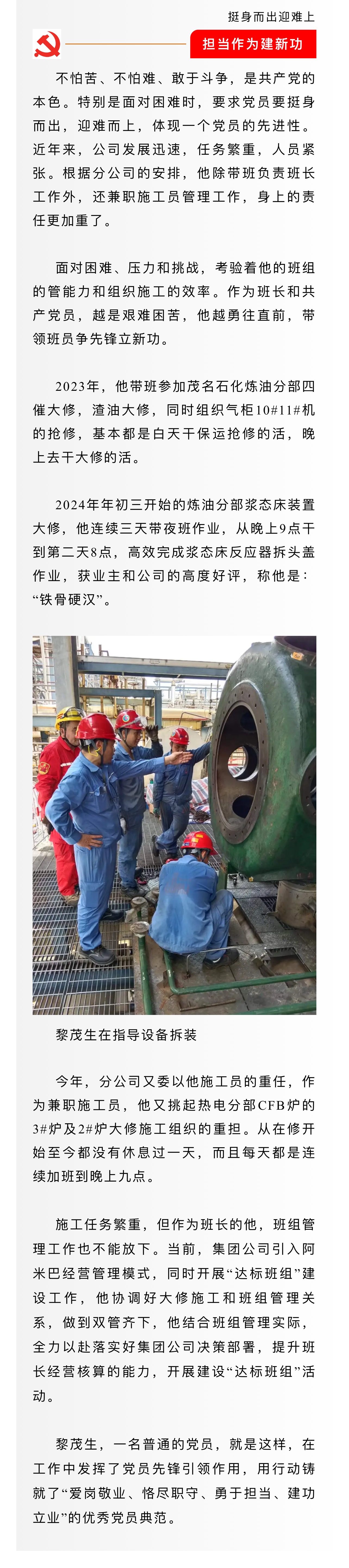 黨(dang)旗照耀我(wo)奮鬥——記集(ji)團公司優(you)秀共産黨(dang)員黎茂生(sheng)