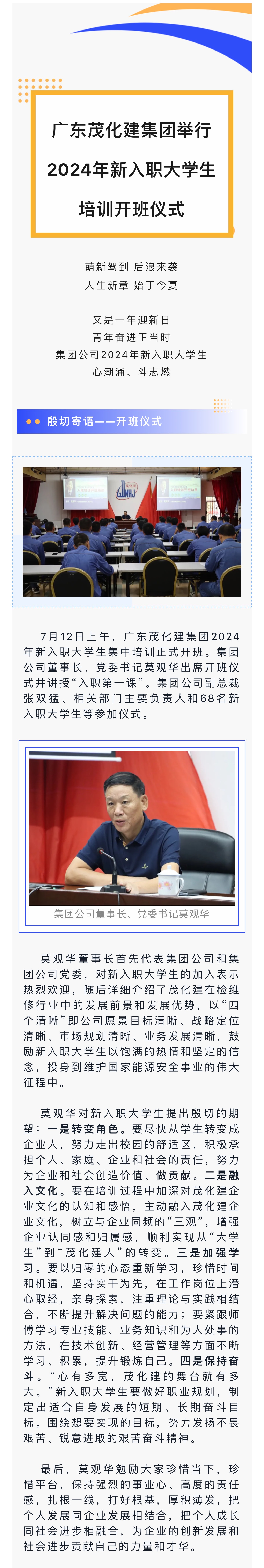 廣(guang)東茂(mao)化建(jian)集團(tuan)舉行(hang)2024年新(xin)入職(zhi)大學(xue)生培(pei)訓開(kai)班儀(yi)🛌🏻式
