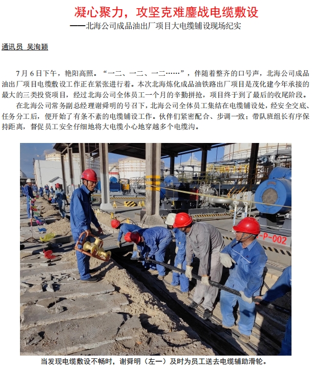 北海(hai)公司(si)成品(pin)油出(chu)廠項(xiang)目大(da)電纜(lan)鋪設(she)現場(chang)紀實(shi)