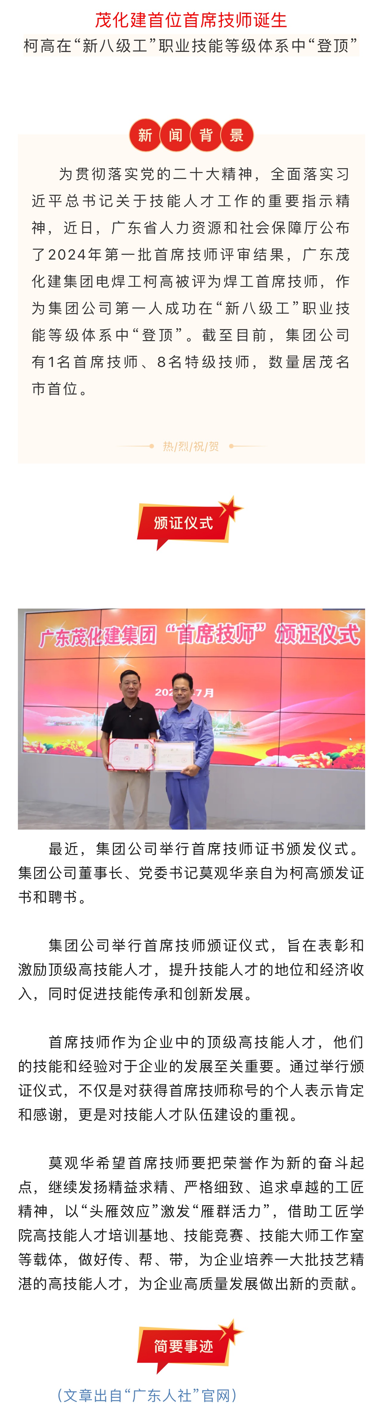 ​喜(xi)報|茂化建(jian)首位首席(xi)技師誕生(sheng)!