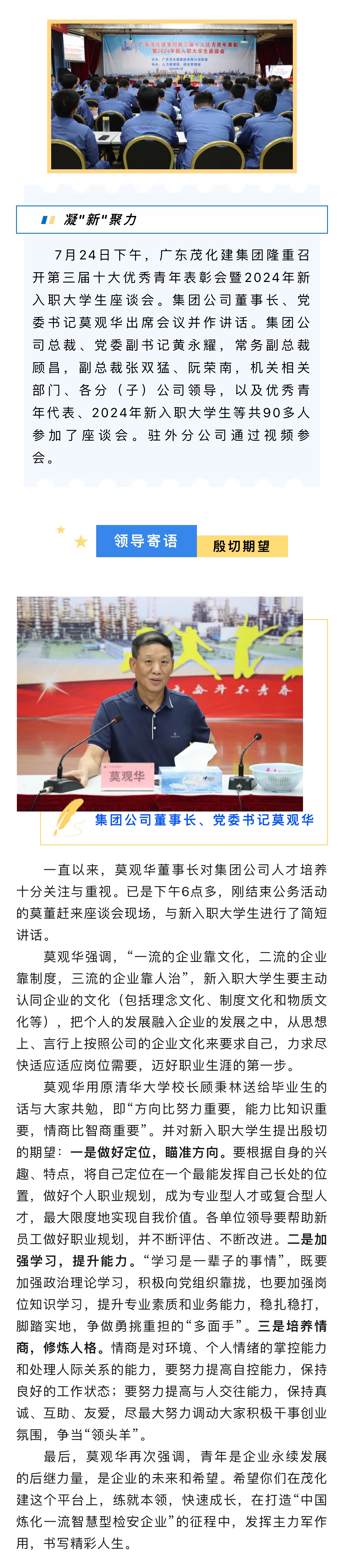 集(ji)團公司(si)召開第(di)三屆十(shi)大優秀(xiu)青年表(biao)彰會暨(ji)2024年新入(ru)職大學(xue)生座談(tan)會