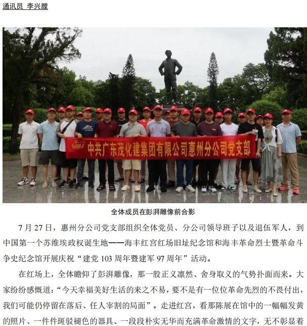 惠州(zhou)分公(gong)司黨(dang)支部(bu)開展(zhan)慶祝(zhu)“建黨(dang)103周年(nian)暨建(jian)軍97周(zhou)年”活(huo)動👩🏼❤️👨🏾