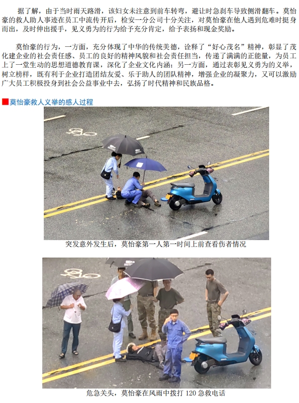 危(wei)難時刻(ke)伸援手(shou):員工莫(mo)怡豪雨(yu)中勇救(jiu)突發意(yi)外路👨🏻‍🏭人(ren)😈獲贊👌譽(yu)