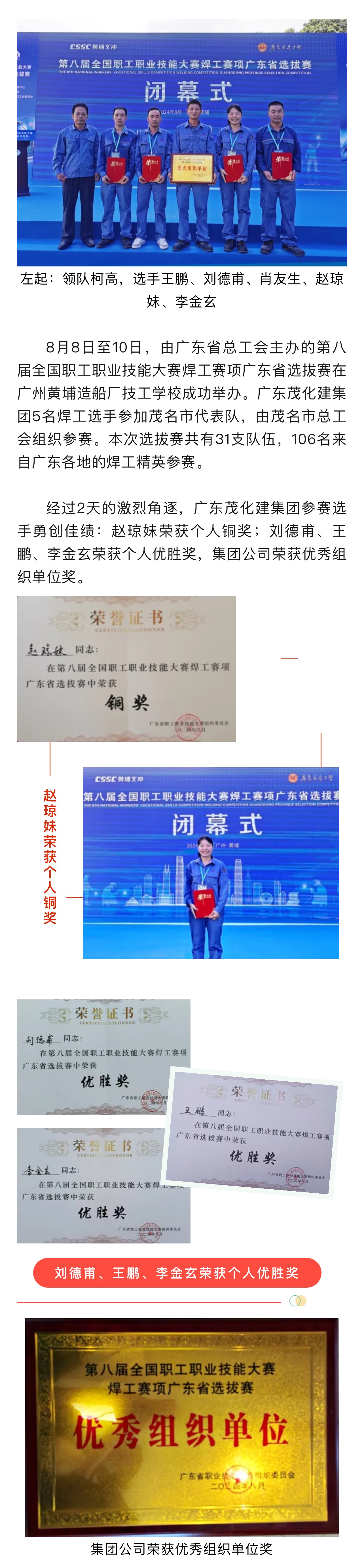 集(ji)團公(gong)司參(can)加第(di)八屆(jie)全國(guo)職工(gong)職業(ye)技能(neng)大賽(sai)焊💘工(gong)項✍🏻廣(guang)東省(sheng)選拔(ba)賽創(chuang)佳績(ji)