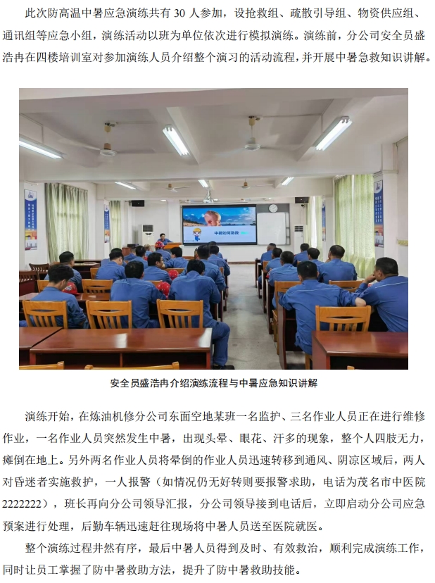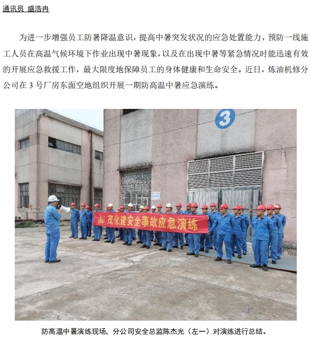 煉油機修(xiu)開展防高(gao)溫中暑應(ying)急演練