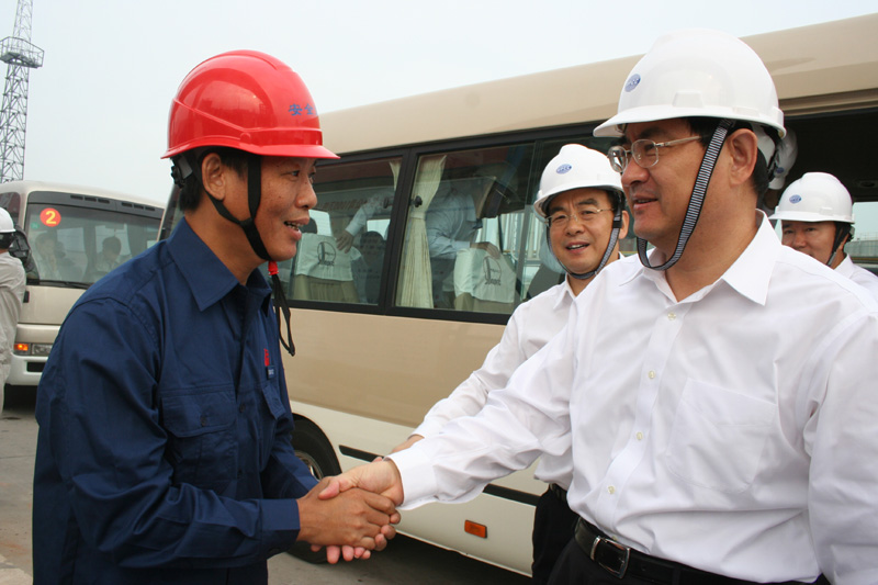 中(zhong)石化總經(jing)理、股份公(gong)司總裁王(wang)天普視察(cha)新常減壓(ya)建設工地(di)